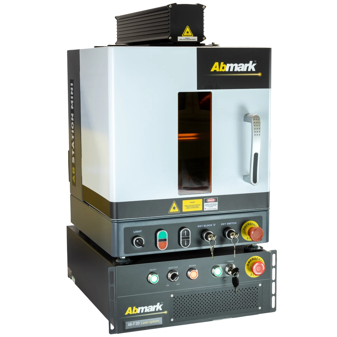 Stacja robocza do znakowania laserowego, Abstation-Mini. Została zaprojektowana tak, aby była kompatybilna z pełną gamą laserów Abmark.